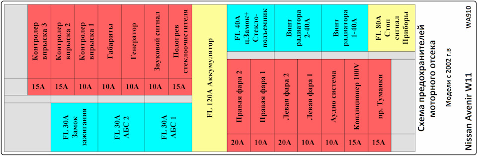 Важно: возможны различия между схемами в статье и реальным расположением на вашем автомобиле. Рекомендуем проверять информацию на крышке блока предохранителей Nissan Avenir или Expert.