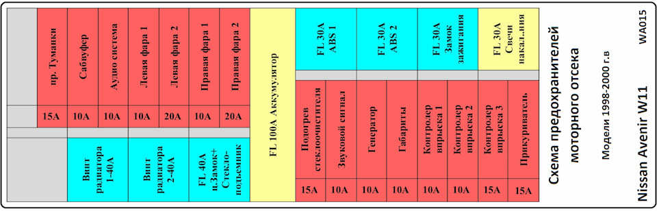 Расшифровка схемы предохранителей Nissan Avenir в салоне