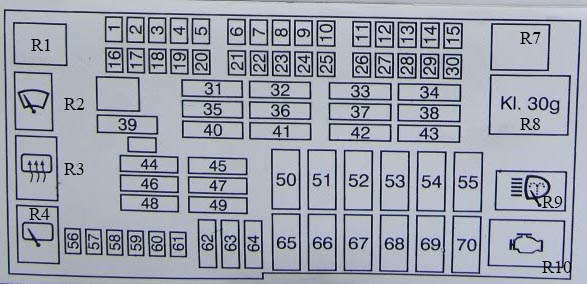 Конфигурация предохранителей зависит от модели двигателя и года выпуска автомобиля.