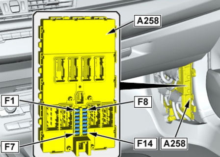Некоторые предохранители, реле и защитные модули могут быть размещены отдельно от основных блоков. К примеру, под капотом в BMW X3 G01 находится: