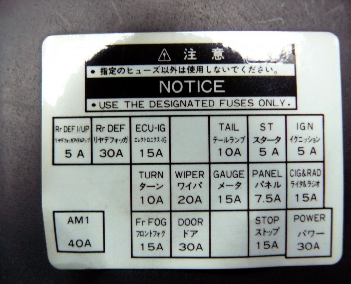 Пример схемы на крышке блока предохранителей Тойота Калдина T21