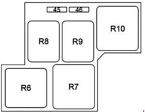 | 25 | DOME 10 A— Освещение порогов дверей, персональное освещение, освещение салона, подсветка ниши для ног, подсветка индивидуального зеркала, внутреннее зеркало заднего вида, электрический усилитель рулевого управления |